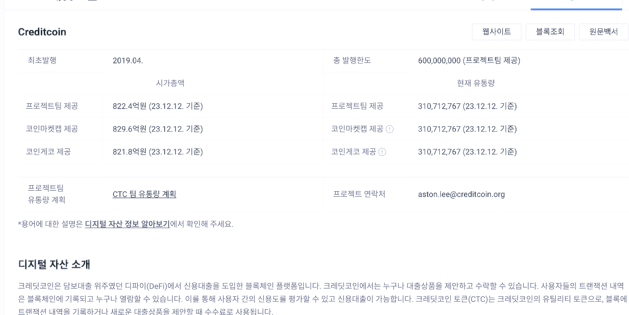 크레딧 코인(CTC)의 업비트(Upbit) 상장